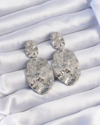 Pirinç Gümüş Renk Oval Ezme Plaka Küpe
