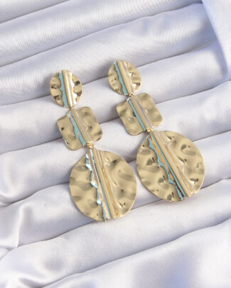 Pirinç Gold Renk Geometrik Ezme Plaka Küpe