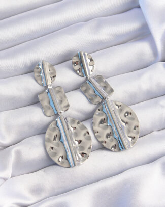 Pirinç Gümüş Renk Geometrik Ezme Plaka Küpe