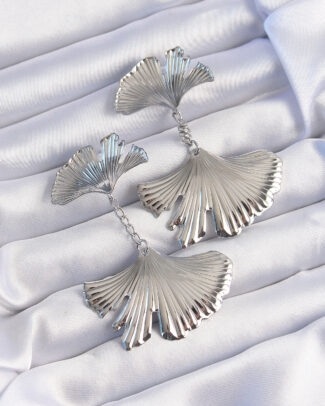 Pirinç Gümüş Renk Tırtıklı Yaprak Model Sallantılı Küpe