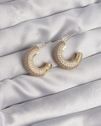 Pirinç Gold Renk Zirkon Taşlı Yarım Halka Küpe