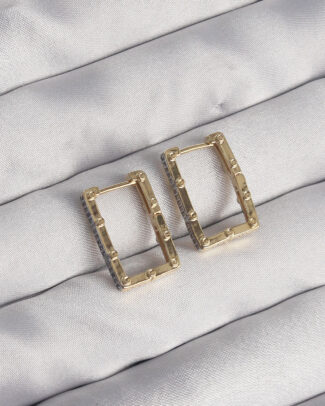 Pirinç Gold Renk Zirkon Taşlı Dikdörtgen Model Seranay Küpe