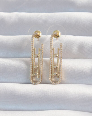 Pirinç Gold Renk Zirkon Taşlı Messika Küpe