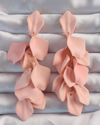 Pirinç Pudra Renk Sallantılı Yaprak Model Küpe