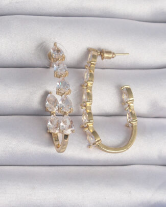 Pirinç Gold Renk Damla Zirkon Taş Tasarımlı Küpe