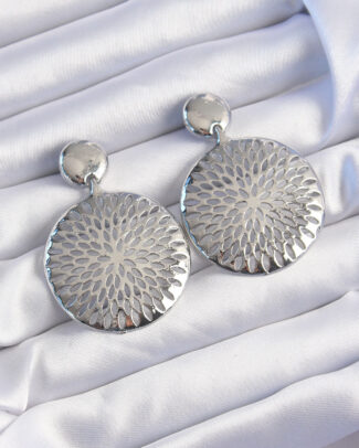 Pirinç Gümüş Renk Oval İşlemeli Küpe