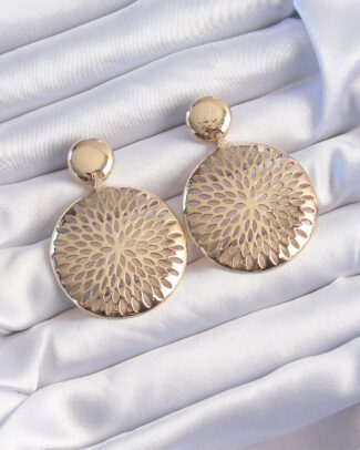 Pirinç Gold Renk Oval İşlemeli Küpe