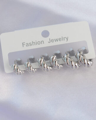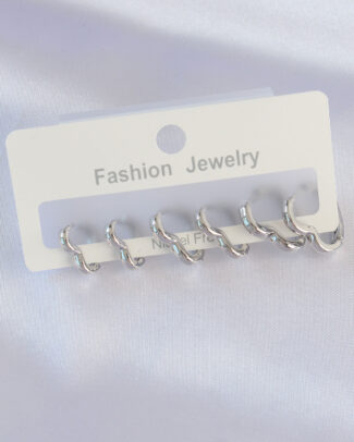 Pirinç Gümüş Renk Minimal Tırtıklı Küpe Seti