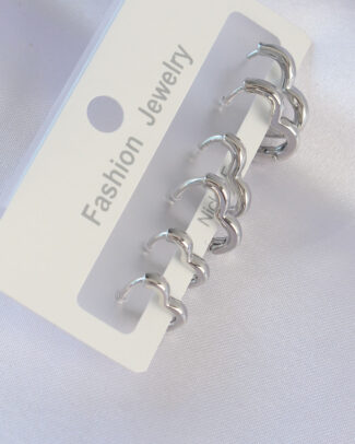 Pirinç Gümüş Renk Kalp Model Küpe Seti