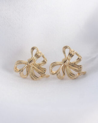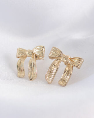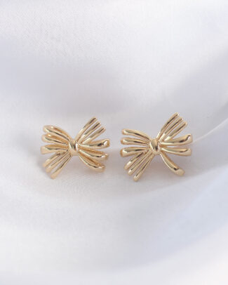 Pirinç Gold Renk Çizgi Detay Fiyonk Küpe