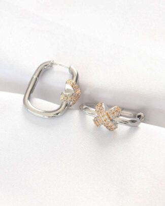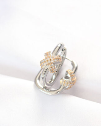 Pirinç Çift Renk Taşlı X Tasarımlı Dikdörtgen Küpe