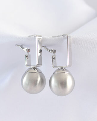 Pirinç Gümüş Renk Dikdörtgen Detay Oval Küpe