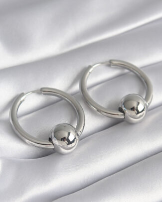 Pirinç Gümüş Renk Halka Top Model Kadın Küpe
