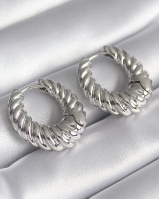 Pirinç Gümüş Renk Halka Sarmal Model Kadın Küpe