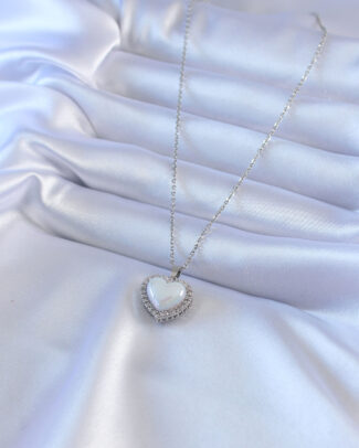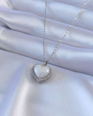 316L Çelik Gümüş Renk İncili Kalp Model Zirkon Taşlı Kadın Kolye