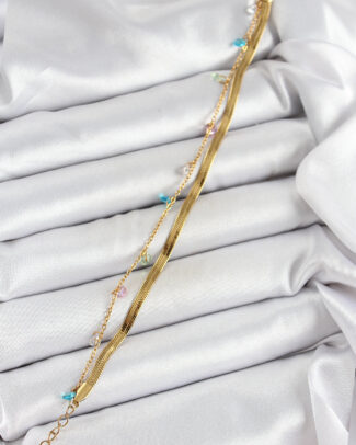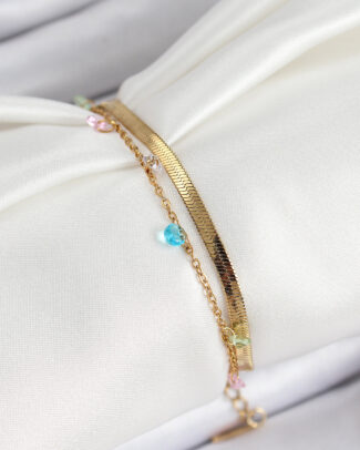 316L Çelik Gold Renk Karışık Renkli Kristal Taşlı 2’li Kadın Bileklik