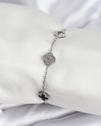 316L Çelik Gümüş Renk Siyah ve Zirkon Taşlı Baby Boy Yonca Kadın Bileklik