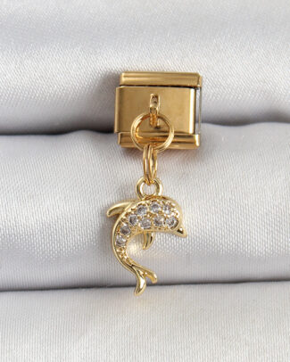 316L Çelik Sallantılı Zirkon Taşlı Yunus Balığı Model Gold Renk Nomination Charm