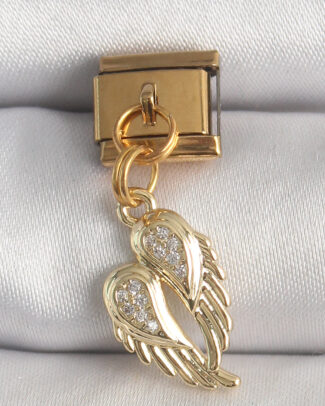 316L Çelik Gold Renk Sallantı Zirkon Taşlı Kanat Model Nomination Charm