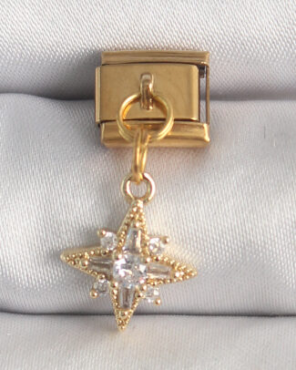 316L Çelik Gold Renk Sallantı Zirkon Taşlı Kutup Yıldız Model Nomination Charm