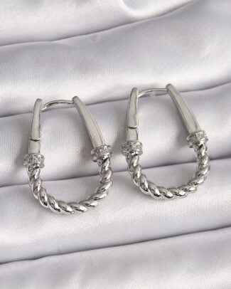 316L Çelik Gümüş Renk Zirkon Taş Detaylı Burma Halka Model Kadın Küpe