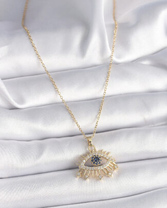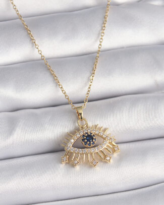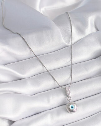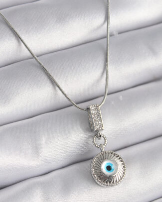 316L Çelik Gümüş Renk Zirkon Taşlı Nazar Boncuk Model Kadın Kolye