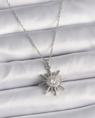 316L Çelik Gümüş Renk Zincir Kova Burcu Zirkon Taşlı Kadın Kolye