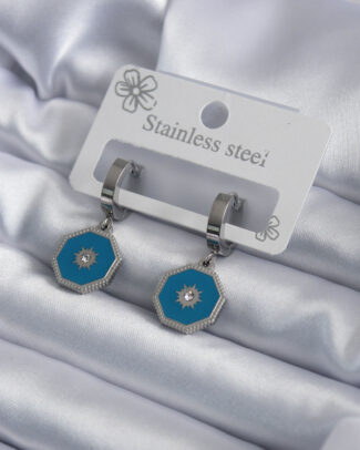 316L Çelik Gümüş Renk Geometrik Model Zirkon Taş Detay Kadın Küpe