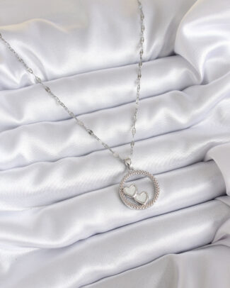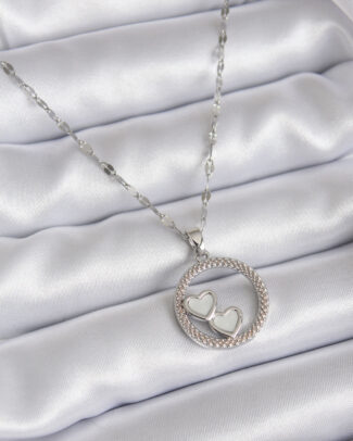 316L Çelik Zincir Gümüş Renk İşleme Detay Halka Kalp Model Kadın Kolye