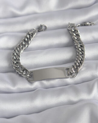 316L Çelik Gümüş Renk İsim Yazılabilir Plaka Model Kadın Bileklik