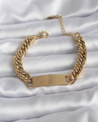 316L Çelik Gold Renk İsim Yazılabilir Plaka Model Kadın Bileklik