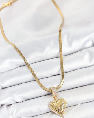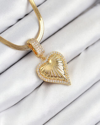 316L Çelik Zirkon Taşlı Kalp Model Gold Renk Kadın Kolye