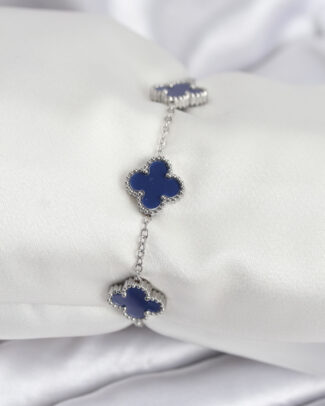 316L Çelik Zincir Gümüş Renk Lacivert Yonca Kadın Bileklik