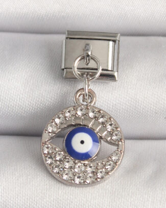 316L Çelik Gümüş Renk Zirkon Taşlı Göz Model Nazar Boncuk Detay Nomination Charm