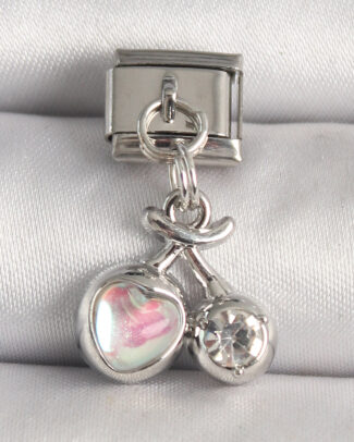 316L Çelik Gümüş Renk Pembe Mineli Kalp Zirkon Taş Detay Nomination Charm