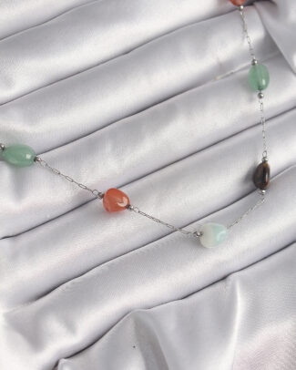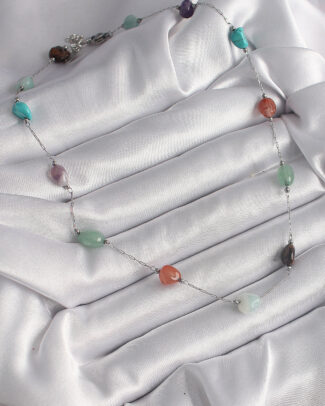 316L Çelik Gümüş Renk Zincir Renkli Doğaltaş Model Kadın Kolye