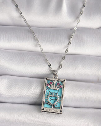 316L Çelik Gümüş Renk Pembe Zirkon Taşlı Taç Kalp Portre Model Kadın Kole