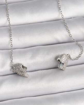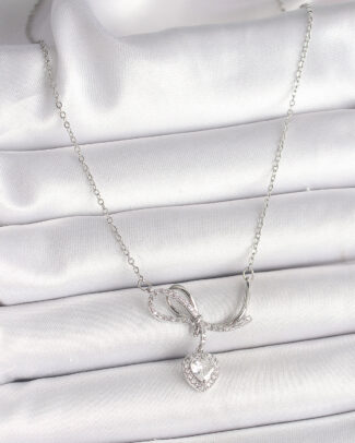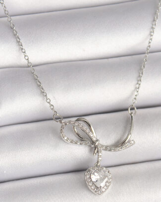 316L Çelik Gümüş Renk Zincir Zirkon Taşlı Düğüm Sallantı Kalp Figür Kadın Kolye