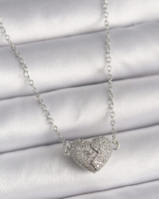 316L Çelik Gümüş Renk Zirkon Taşlı Mıknatıslı Kalp Model Kadın Kolye