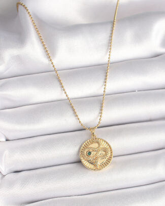 316L Çelik Gold Renk Topçuk Zincir Yılan İşlemeli Zirkon Taş Detaylı Madalyon Model Kadın Kolye
