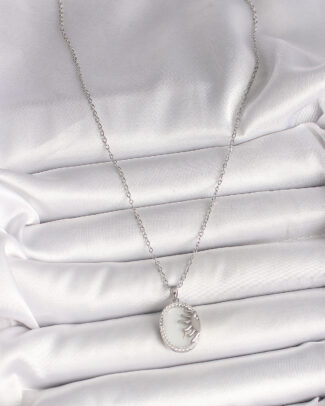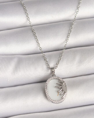 316L Çelik Gümüş Renk Zincir Beyaz Mineli Gün Batımı Model Kadın Kolye