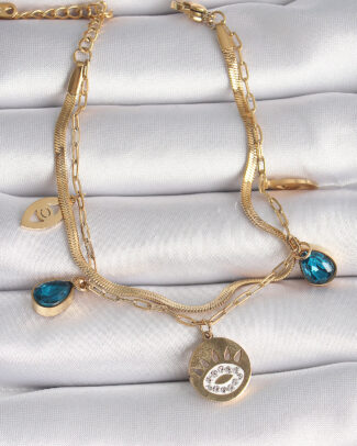 316L Çelik Gümüş Renk Zincir Mavi Boncuklu Zirkon Taşlı Kadın Kolye