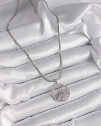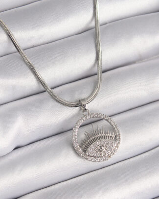 316L Çelik Gümüş Renk İtalyan Zincir Zirkon Taşlı Göz Model Kadın Kolye
