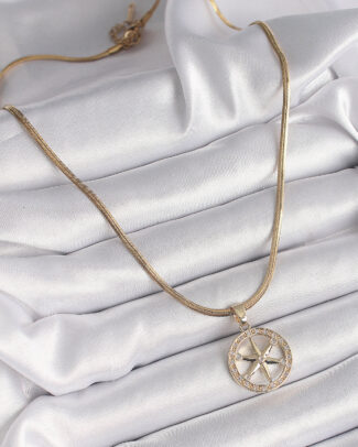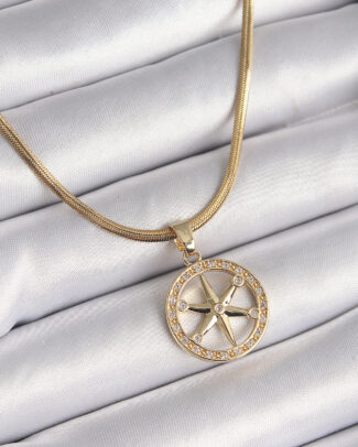 316L Çelik Gold Renk İtalyan Zincir Zirkon Taşlı Kutup Yıldız Model Kadın Kolye