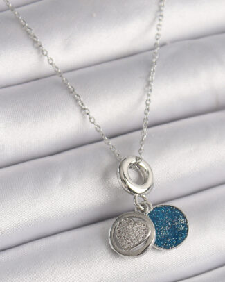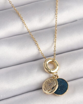 316L Çelik Gold Renk Zincir Zirkon Taşlı Kalp Model Mavi Simli Kadın Kolye