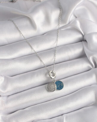 316L Çelik Gümüş Renk Zincir Zirkon Taşlı İşleme Mavi Simli Kadın Kolye