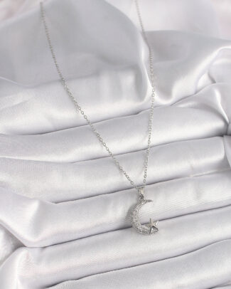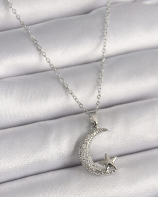 316L Çelik Gümüş Renk Zincir Zirkon Taşlı Hilal Model Yıldız Detay Kadın Kolye
