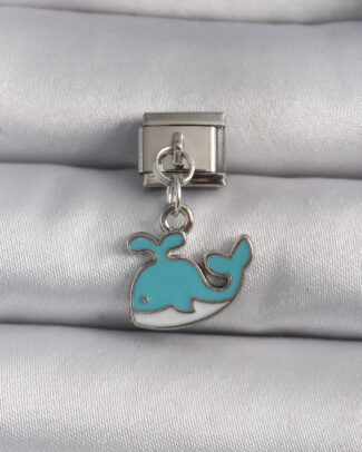 316L Çelik Gümüş Renk Sallantı Mavi Balina Model Nomination Charm