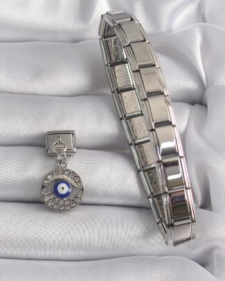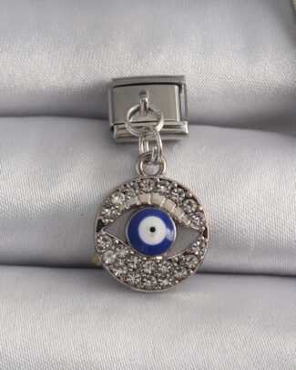 316L Çelik Gümüş Renk Sallantı Zirkon Taşlı Göz Model Nazar Boncuk Detay Nomination Charm