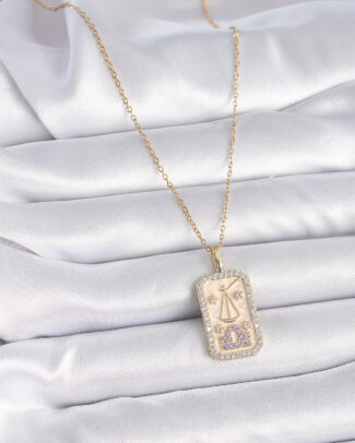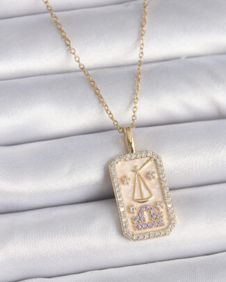 316L Çelik Gold Renk Zincir Terazi Burcu Zirkon Taşlı Kadın Kolye